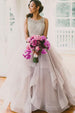 Modest Tulle A-line Scoop Sweep Train Wedding Dresses. Bridal Gowns. MW604