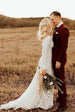 Rustic Ivory Mermaid Long Sleeves Backless Wedding Dresses. Bridal Dress. MW594