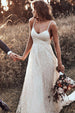 Simple Tulle A-line V-neck Backless Spaghetti Starps Wedding Dresses. MW568