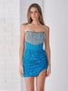 Introducing the Sinead Bodycon Strapless Corset Homecoming Dress. an absolute show-stopper that epitomizes glamour and style. Crafted in dazzling sequins and available in vibrant colors. this dress is designed to make you the center of attention. The bodycon style accentuates your curves. while the beaded illusion bodice adds a touch of intrigue. The scoop neckline and sleeveless cut allow for an elegant display of your shoulders. and the lace-up back ensures a perfect fit. But it's the slit that adds that final touch of allure. promising to make your night unforgettable.