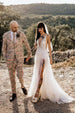 Tulle A-line V-Neck See Through Thigh Slit Beach Wedding Dresses. MW982
